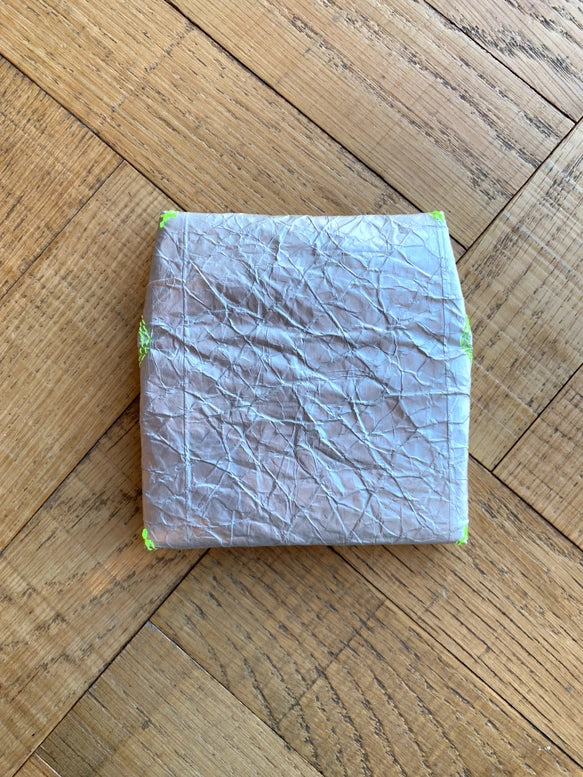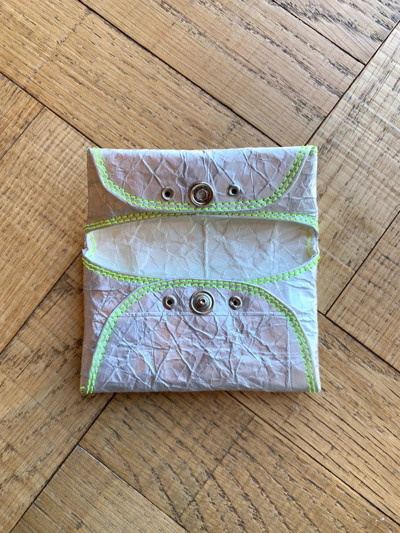 小銭も入るカード財布。シルバーは豆乳パックの内側を使用。ネオンカラーのバリエーションで、「普段使いだけど個性を出したい」という方におすすめのデザインとなっています。
